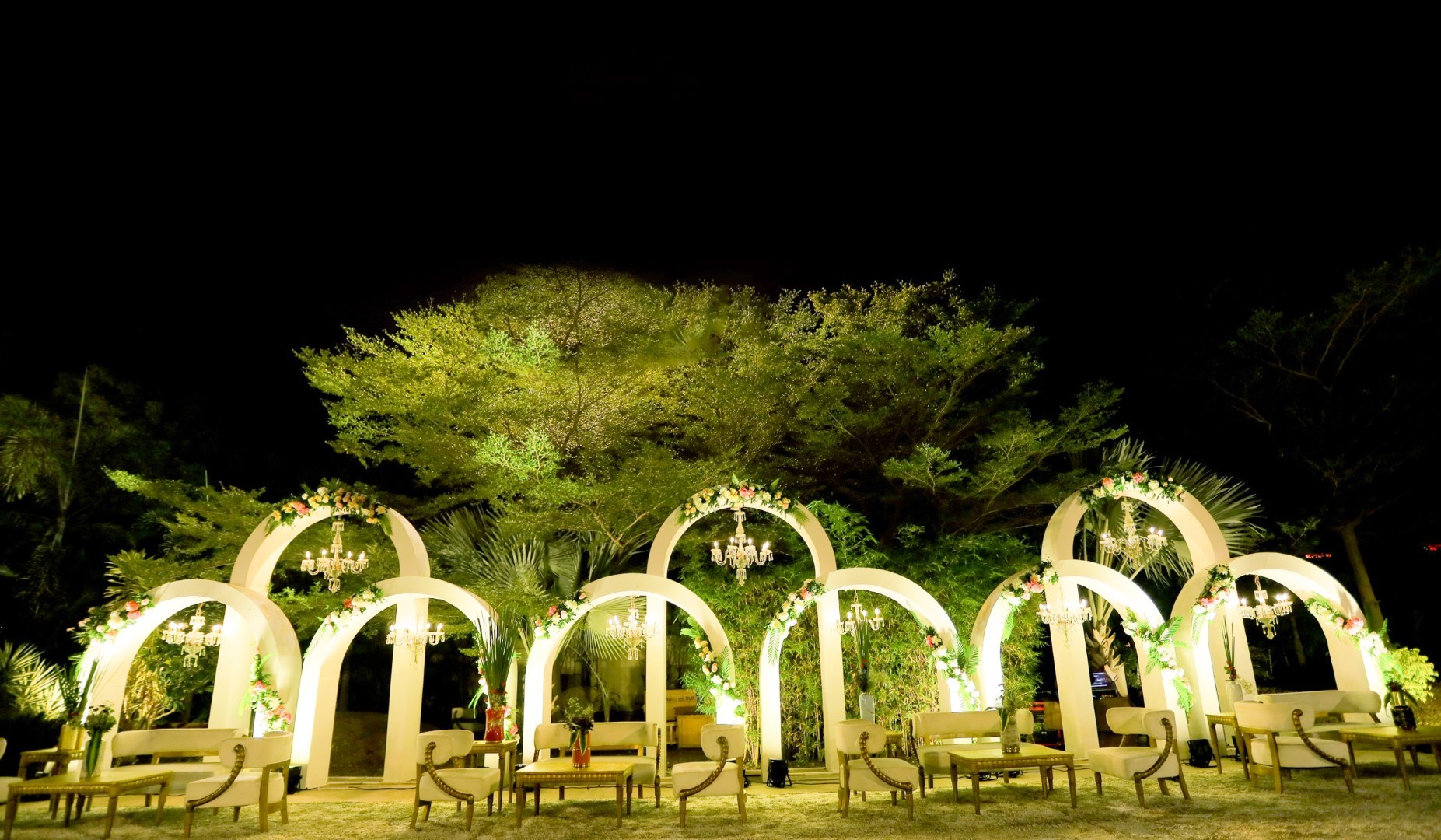 The air is filled with the sweet scent of blossoms, transporting guests to a tropical paradise.