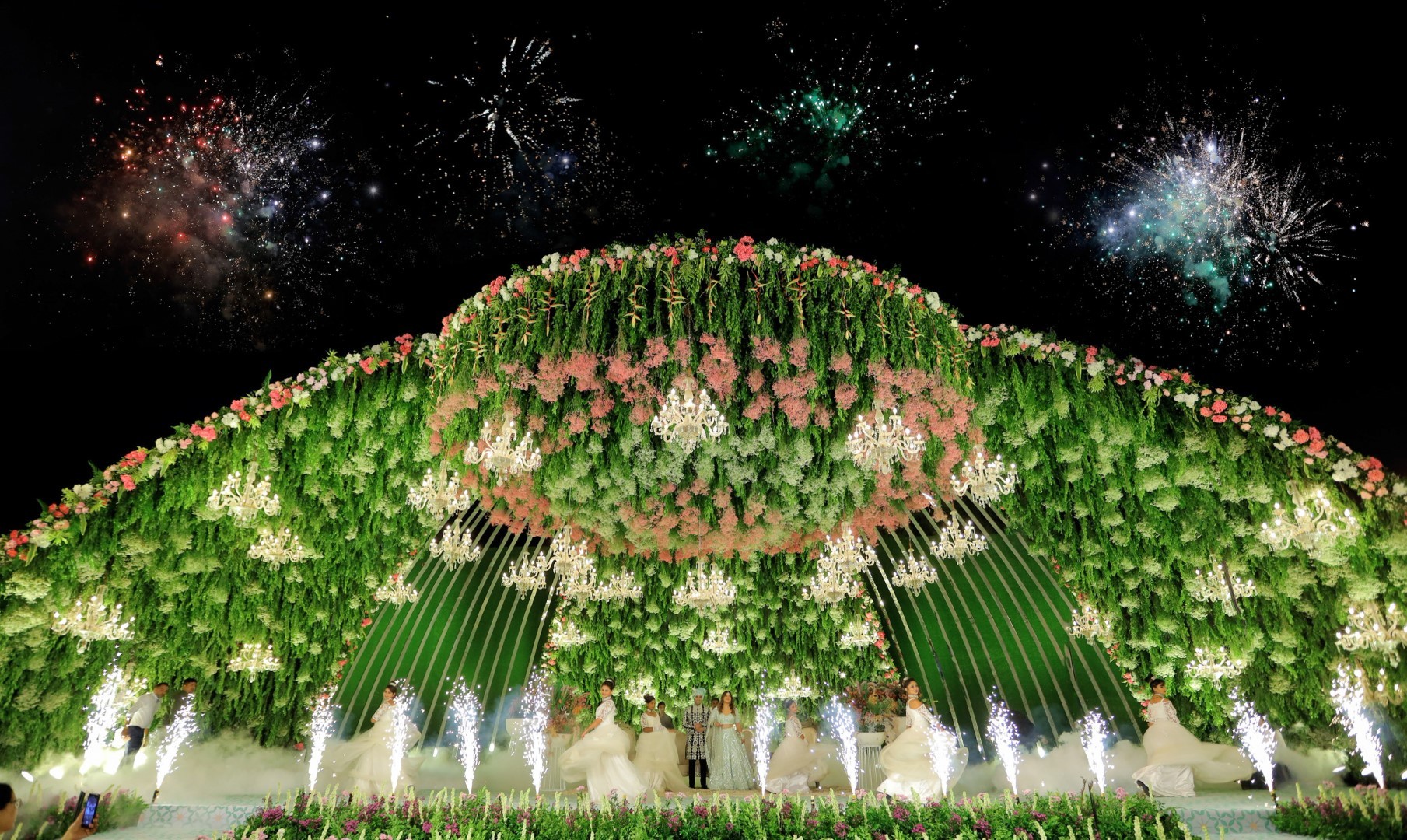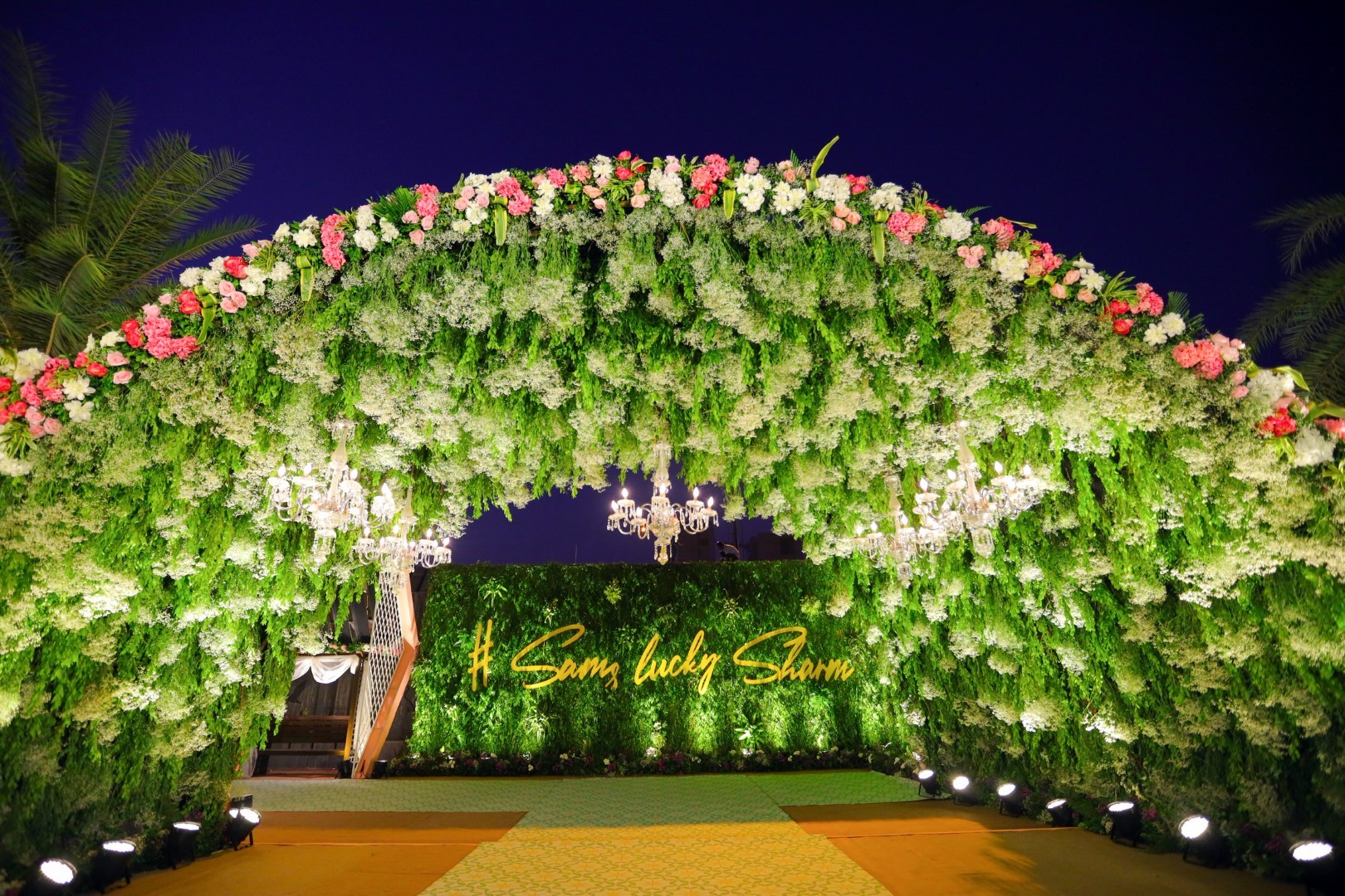 Upon entering the main reception area, guests are instantly transported into a lush oasis of beauty and tranquillity. A grand dome takes center stage, bathed in soothing light that casts a warm and inviting glow. The centre of this magnificent dome is adorned with a exotic fresh flower chandelier, creating a vibrant tapestry of colors and fragrances.